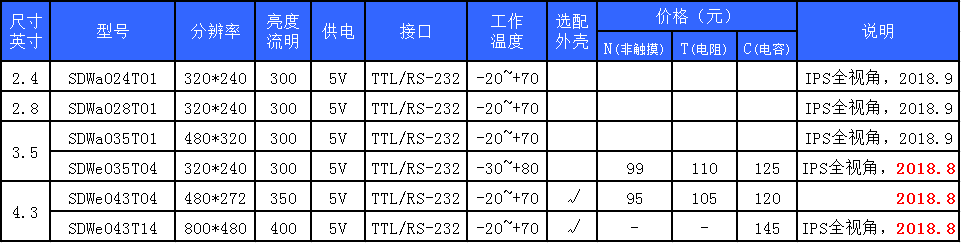 多款小尺寸IPS屏(2.4寸-4.3寸)將陸續量產