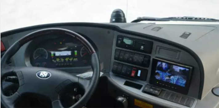 公交車輛由于其特殊的使用用途,需要頻繁開關車門、上下乘客,而且通常是存在前后兩個車門。為了防止發(fā)生安全事故,一般會在前后車門位置各安裝一只攝像頭。儀表盤上的顯示屏可以顯示攝像頭傳送過來的下車門位置的乘客信息,方便司機開關門。下圖為一款公交車儀表盤照片,司機正視方向顯示屏顯示車輛電池電量等內部參數(shù),右側顯示屏顯示下車門位置的攝像頭監(jiān)控畫面。
