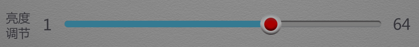 圖3所示為滑動調(diào)節(jié)背光亮度的案例,由滑塊控件和進度條控件組合設(shè)計實現(xiàn)。設(shè)計中用到了兩個png格式的圖標(biāo),一個是圓形的滑塊圖標(biāo),另一個是長條形的藍色進度條圖標(biāo)。圖中滑塊圖標(biāo)和進度條圖標(biāo)的邊緣都能夠自然的和背景融合在一起。